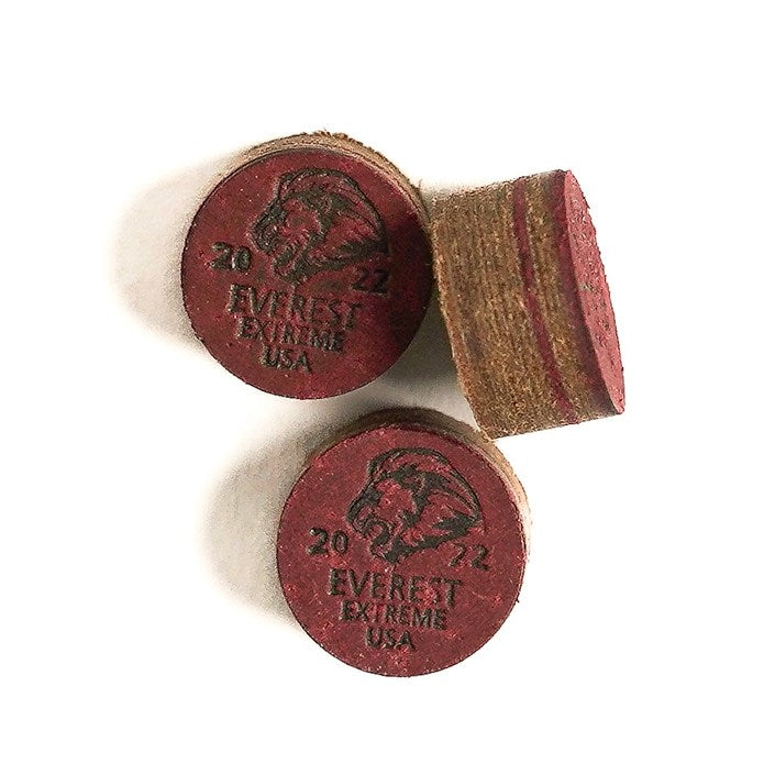 Notice: Our cue tips are not manufactured with a vacuum laminated system (some refer to it as 'vaculam') whereby forcing excessive glue into the leather fibers. This vacuum laminating process causes tips to feel more plasticized due to the greater permeation of the glue into the leather fibers. This permeation or plasticizing creates a ticking sound when the cue ball hits the tip as in Tiger cue tips (just ask around). You don't need this distraction so choose Everest Extreme™ Cue Tips.