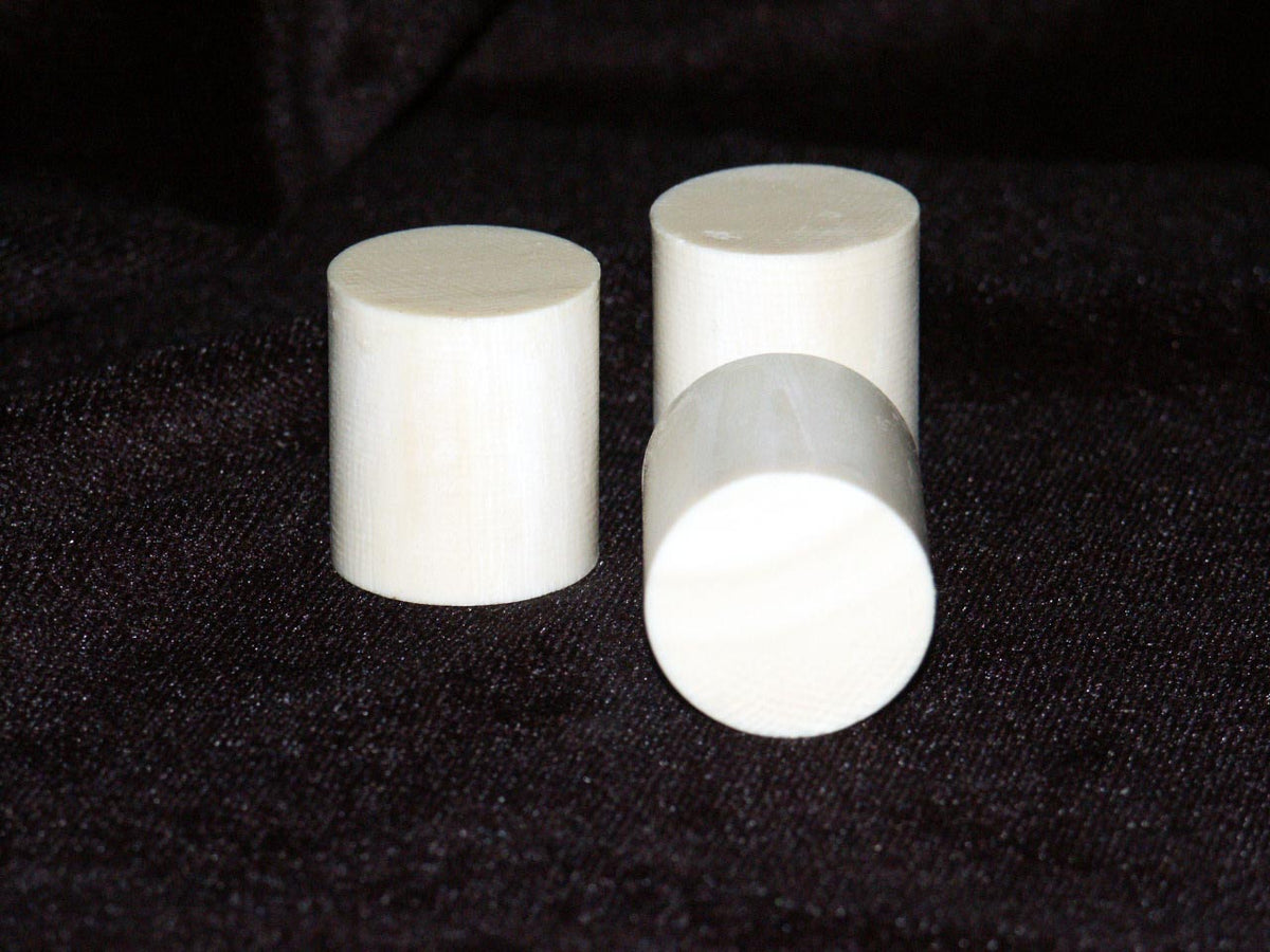 These are turned round stock to approximate size of : .960" diameter X 1.125" in length. We sell only quality, pre-ban and well documented ivory. We make the market and you won't find it for less.