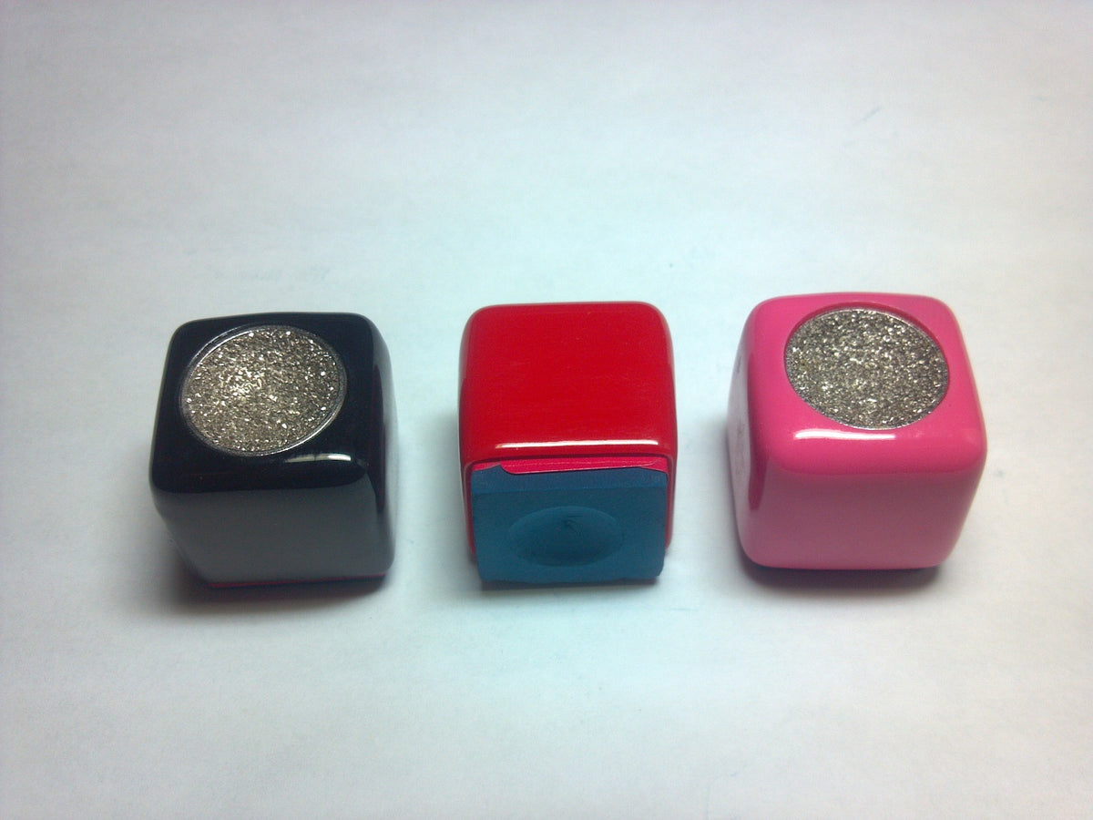 This is our brand new Scuffer-Chalker. It comes in black, red, and pink. The chalk can easily be changed out and the scuffer will give you a precision nickel radius. Included is Masters chalk but you can upgrade to Performance Morakami Chalk for $2.00.