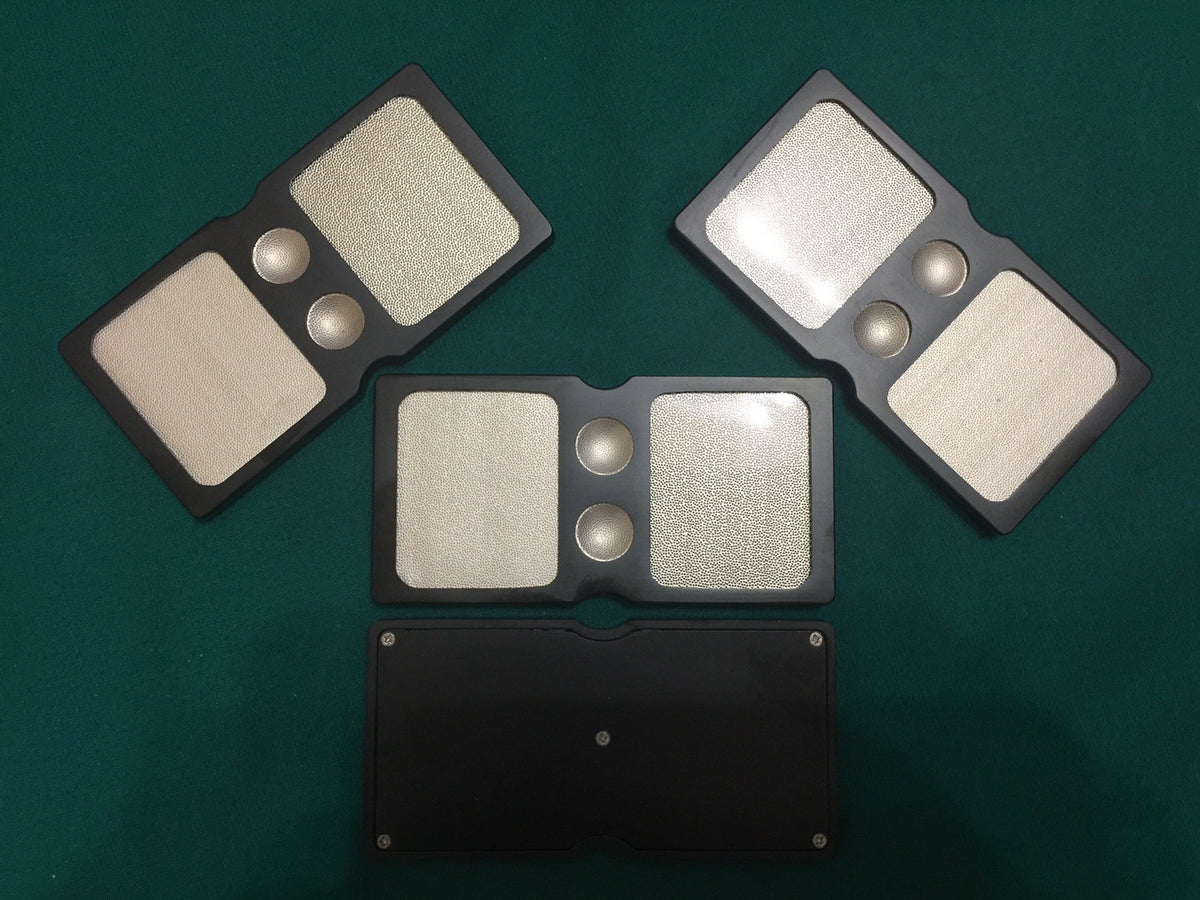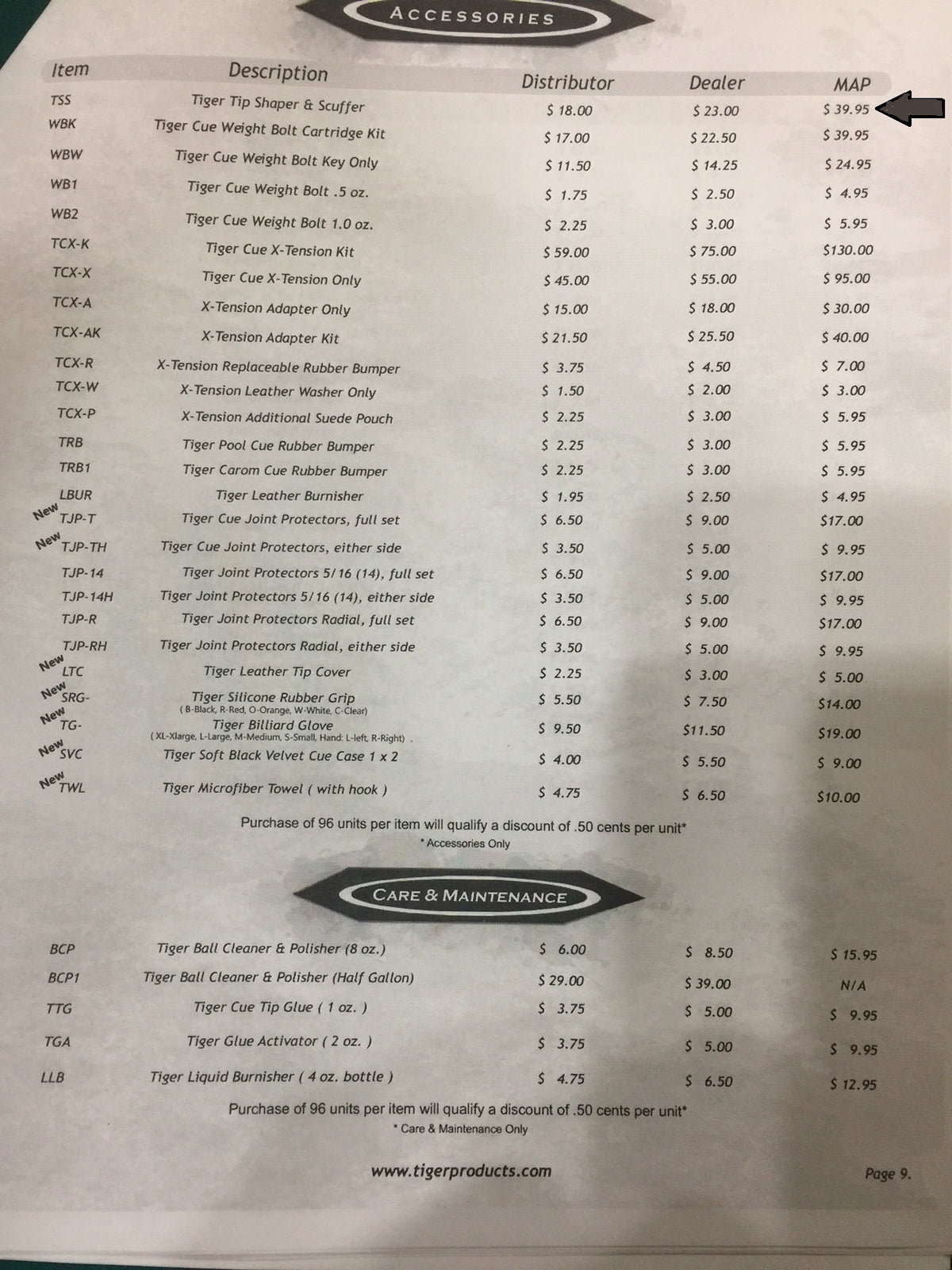 The all new Tiger Paw Tip Shaper & Scuffer! This fine billiard cue instrument is an all anodized aluminum body. The Tiger Paw shaper & scuffer is extremely durable and very light weight; less than 4oz and measures 2.5" x 5" and only about a 1/4" in height. It comes with both a dime and nickel shapers. For scuffing and shaping your cue tips, you have both a fine and coarse plates at your disposal. These laser cut plates will last forever and don't need to be replaced. The assembly is well constructed and will last a lifetime.