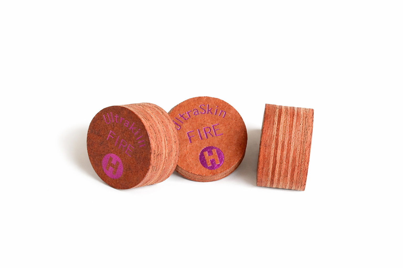 Each piece of leather is inspected and shaved to exact size. All the layers are put through a proprietary treatment and each layer is coupled with proprietary resins so each Ultraskin Layered Cue Tip will give the player the same feel and hit each time.