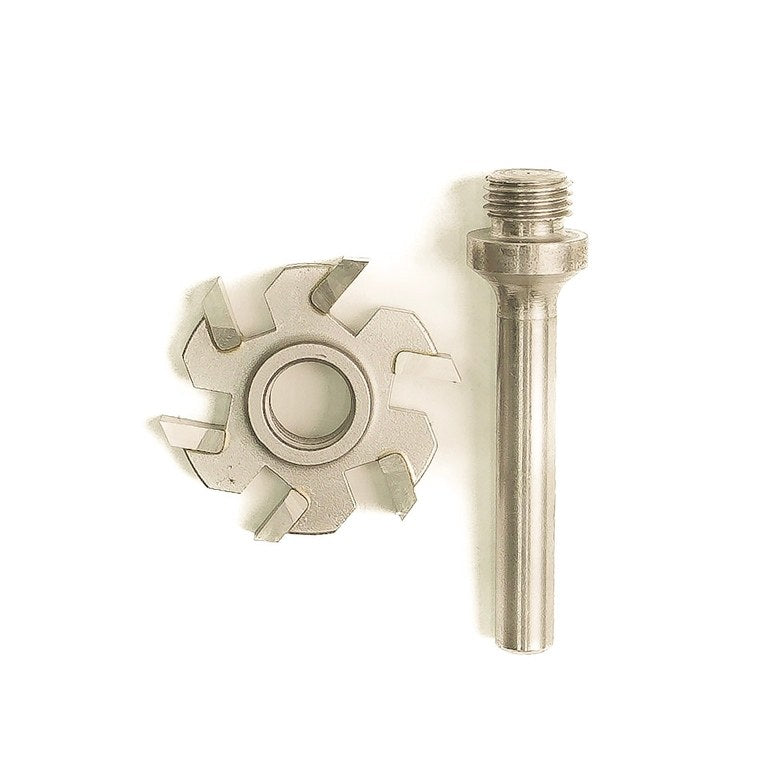This is made on a CNC machine and the blades are all in-line with one another. This is a 6 flute router bit for extreme accuracy, smooth cuts and less vibration. You'll get ultra smooth cuts on shafts and butts. The cut is so smooth that it appears as if the finished piece has been sanded and buffed! Exceptionally clean cuts. A must for the serious cue builder.