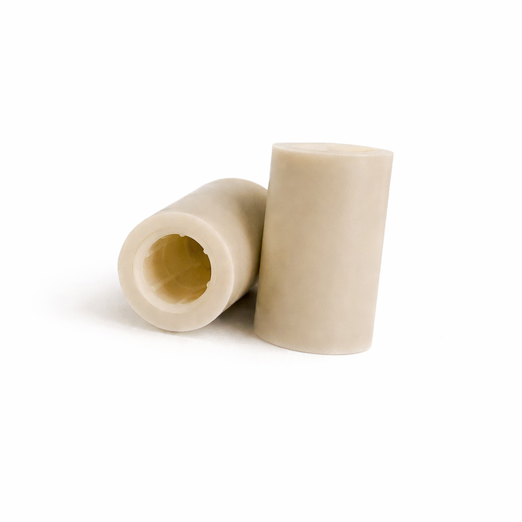 Aegis II is a Linen Melamine based thermoset ferrule material. It is rolled and molded for high strength. It bonds well with Epoxy, Cyanoacrylate, and wood glues. Machines well, and the color varies from soft white to Ivory colored.
