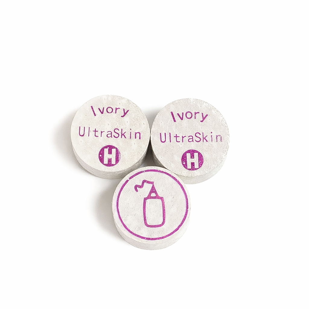 The Ultraskin Layered Cue Tip offers both the custom cue maker and the cue repair person the quality he and his customers expect at affordable prices. All Tips are 14 mm & 8 layers.