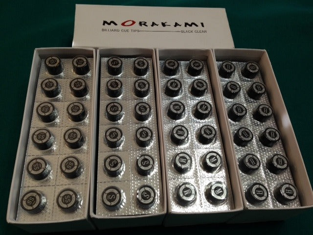 Morakami II™ Black Clear Cue Tips are available in Super Soft, Soft, Medium and Hard in 14mm diameter.
