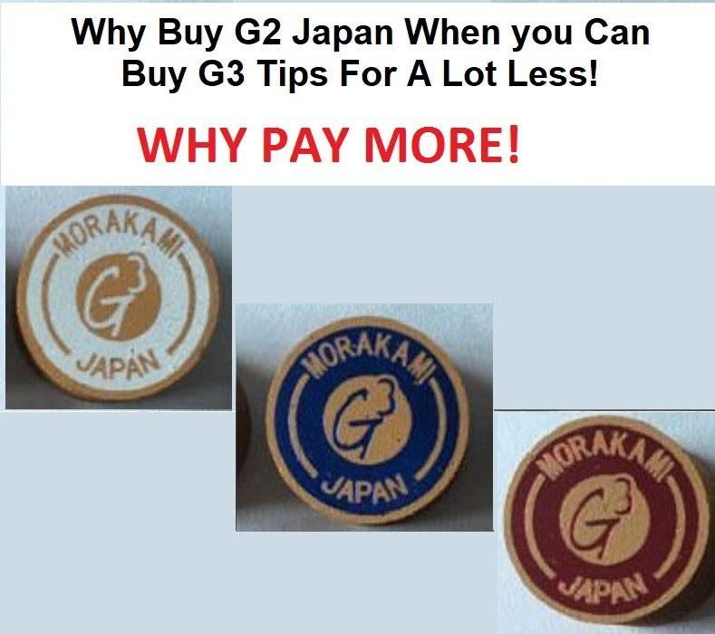 The new Morakami G3™ Cue Tips are the newest innovative tip to hit the cloth. Each G3 tip is 8 layers of the highest quality & treated Japanese pig skin. Each batch is tested with state-of-the-art computers to check each tip for quality as well as for their hardness and firmness to maintain consistency. Our G3 Cue Tips uses the same leather as the inflated priced G2's; just look at the comparison photo!